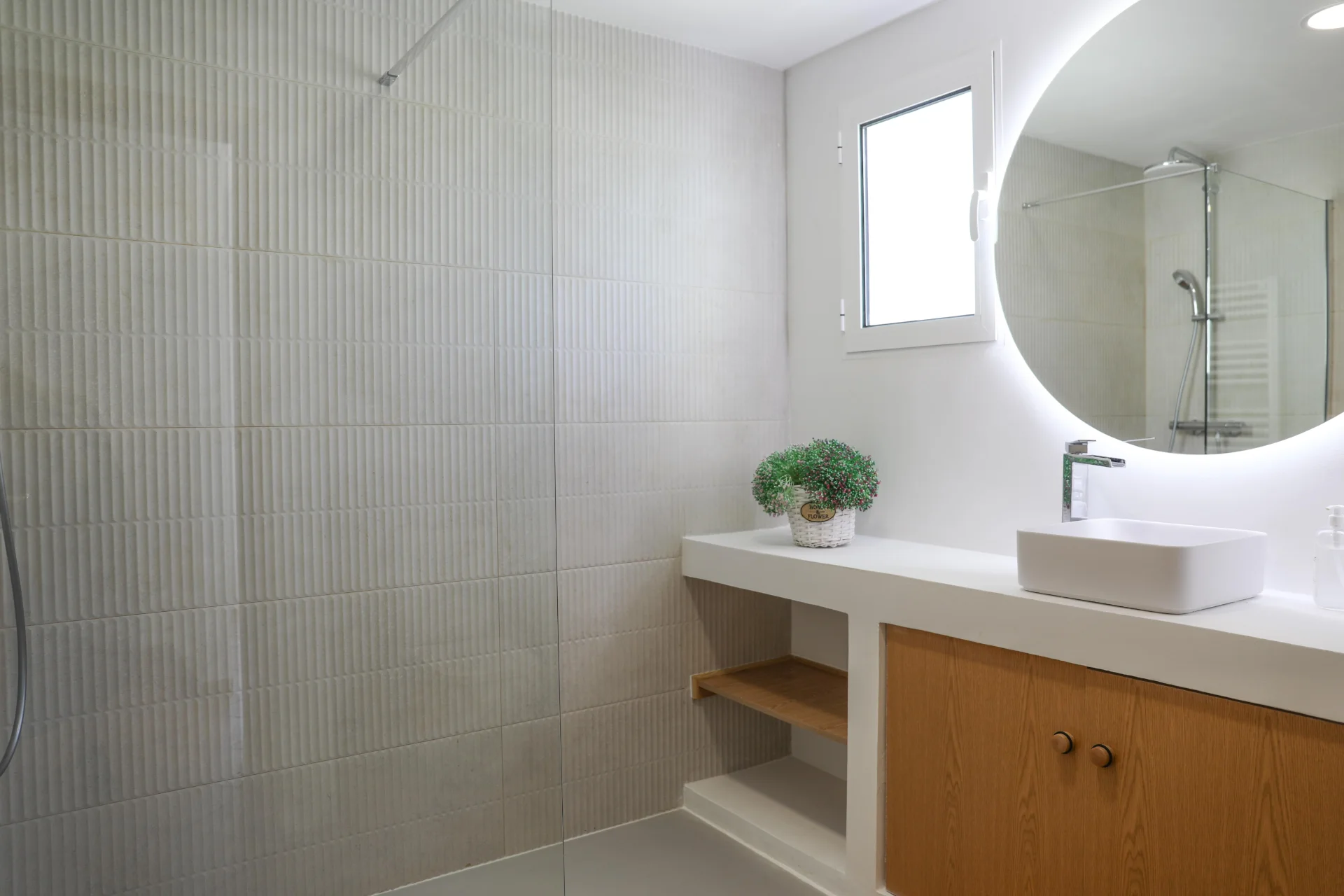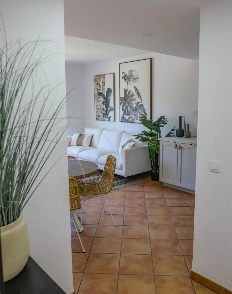 The apartments offer top-notch facilities. Spacious rooms, an abundance of light, renovated kitchen and bathroom, private parking spaces and a communal swimming pool.